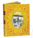 Цветные иллюстрации, цельнокожаный переплет ручной работы из натуральной кожи, тиснение золотой фольгой, художественная вставка в обложку, торшонированный обрез, кругленый корешок, бинты, дублюра, ляссе.