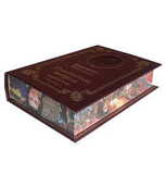 Трехсторонний обрез цветной, расписной, иллюстрирующий содержание книги, переплет ручной работы из натуральной кожи (Италия), тиснение золотой фольгой, конгревно-блинтовое глубокое тиснение (рамка), высокое конгревное тиснение (портрет автора), форзацы- дизайнерская бумага, дублюра, ляссе.