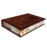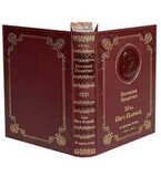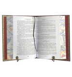 Трехсторонний обрез цветной, расписной, иллюстрирующий содержание книги, переплет ручной работы из натуральной кожи (Италия), тиснение золотой фольгой, конгревно-блинтовое глубокое тиснение (рамка), высокое конгревное тиснение (портрет автора), форзацы- дизайнерская бумага, дублюра, ляссе.